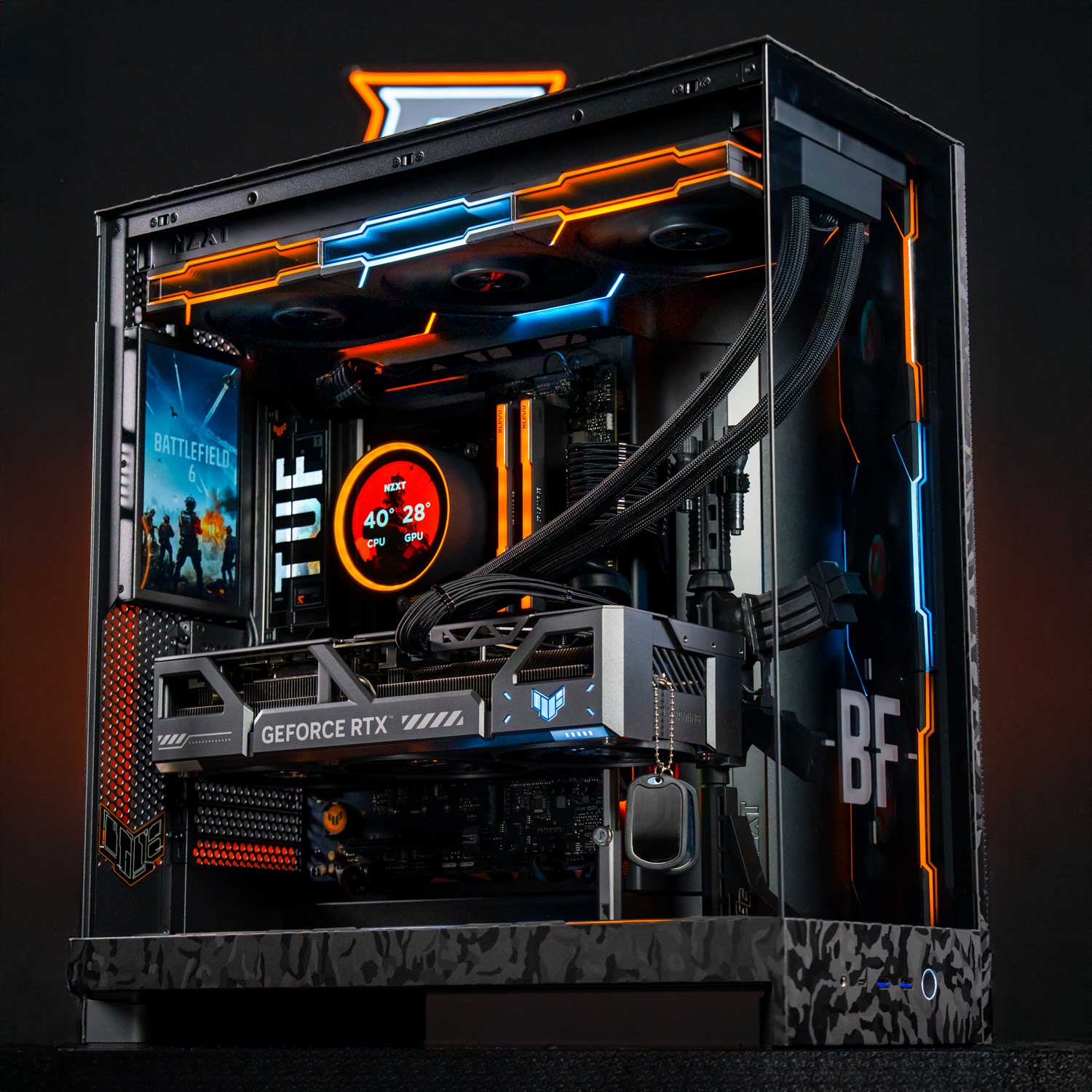 This Battlefield 6 inspired PC setup is locked, loaded and ready for war. Packing elite components with custom mods including a black camo wrapped NZXT H9 Flow chassis and a 3D-printed BF6 M4A1 mounted inside - truly a 1 of 1 masterpiece.