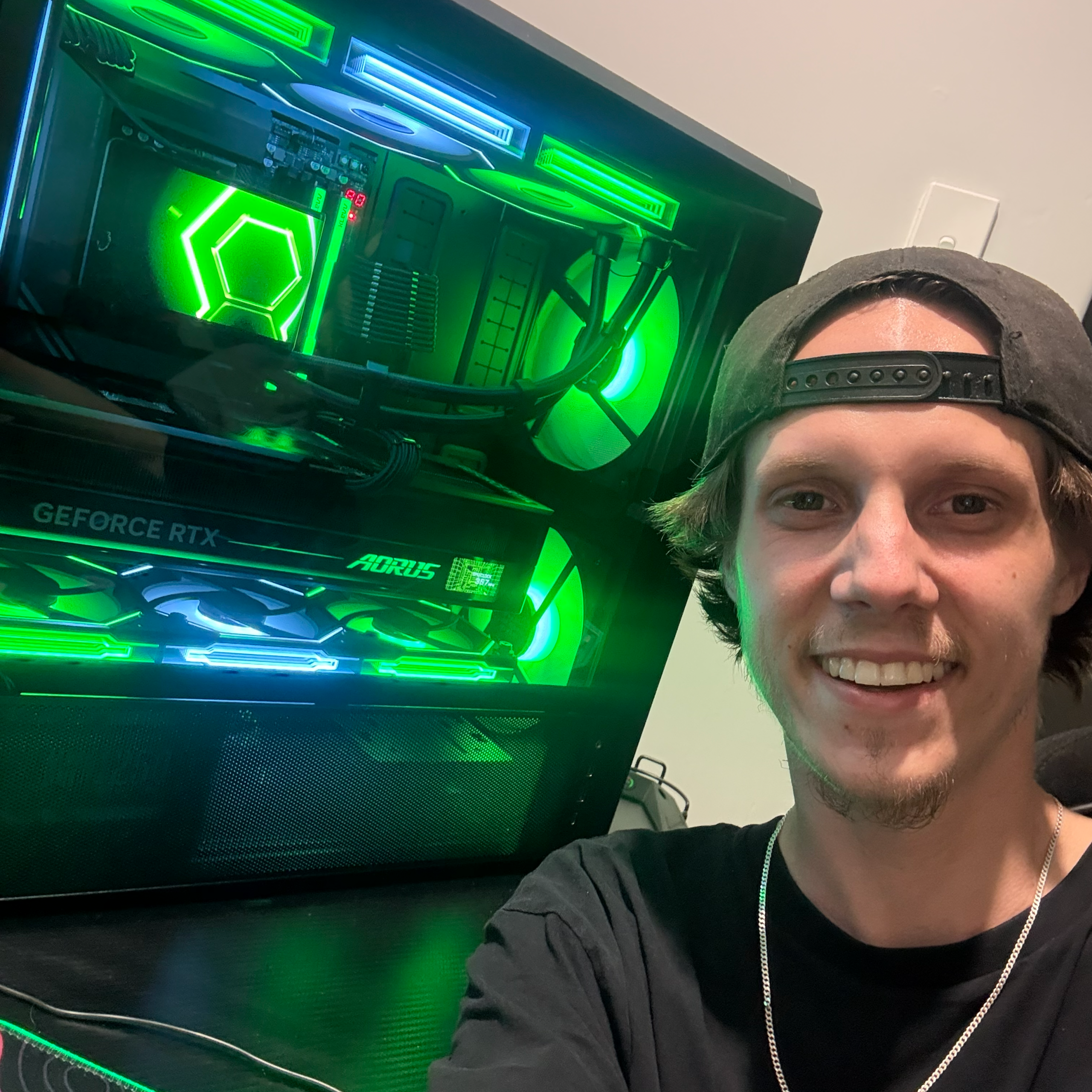 Person wearing a graphic esports jersey.